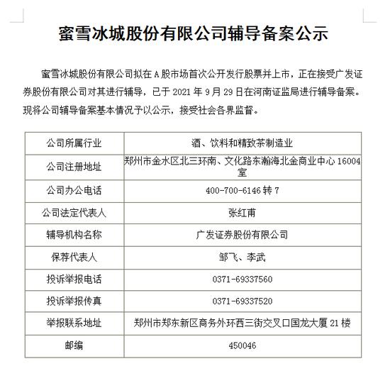 国庆节前夕,蜜雪冰城完成在河南证监局IPO辅导备案。蜜雪冰城上市之旅正式开启。