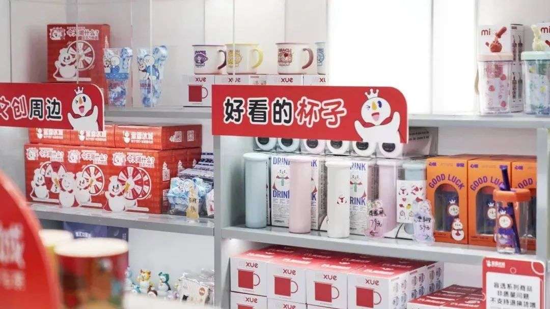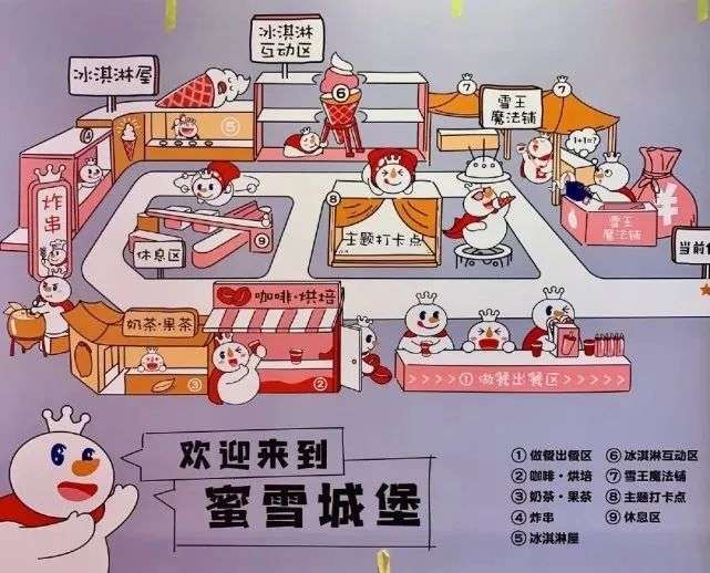 “特色新品未上线外卖渠道,如果到门店体验,晚上九点后新品基本售罄。”这家集合体验店有超过200平方米的门店面积,以“雪王城堡”为主题,有包含冰淇淋屋、雪王魔法铺、主题打卡区等多达9个分区,除了提供热门餐品品类,如奶茶、冰淇淋、炸串、烘焙等,还有雪王IP周边、文创商品、主题盲盒等。