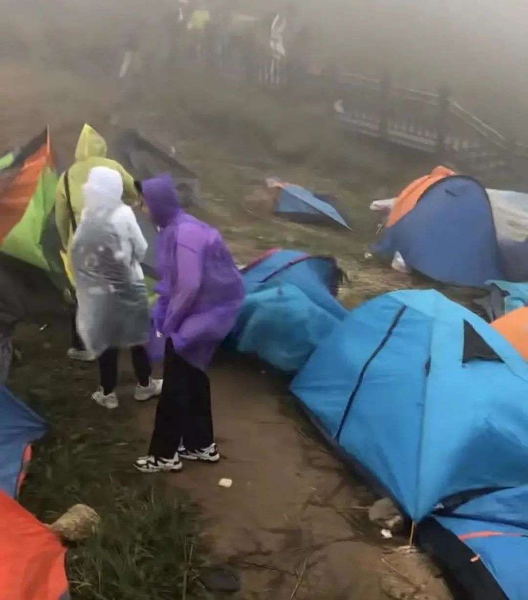 然而,今年的武功山被过度宣传之后,短时间内的“网红化”让它来不及完善硬件设施、软件服务和规范,就承担起超负荷的接待量。十一期间,武当山“帐满为患”的新闻上了电视;视频网站也不乏“山顶撑满同款帐篷,女子半夜迷路。”这样的现场报道;而且就在不久前,武功山露营遭遇极端天气的视频也在网上疯转,滤镜美化后的露营画面在现实面前,仿佛一个卸妆的网红,判若两人。