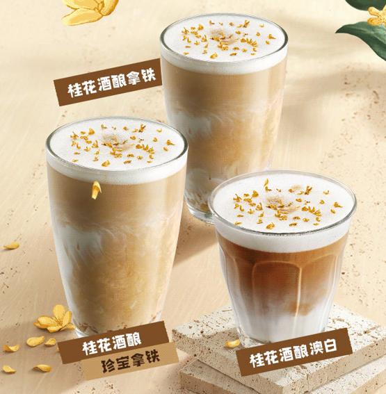 桂花不仅在新式茶饮行业备受欢迎,融入桂花风味的咖啡也在秋天掀起一波小热潮。星巴克的桂花绵云拿铁、Manner的桂花龙井拿铁、皮爷咖啡的桂花酒酿拿铁、瑞幸的桂花燕麦拿铁……桂花拿铁可以说是各大咖啡门店的秋季气氛组担当,它们大多限时出现,为消费者的味觉与嗅觉率先带来秋的气息。