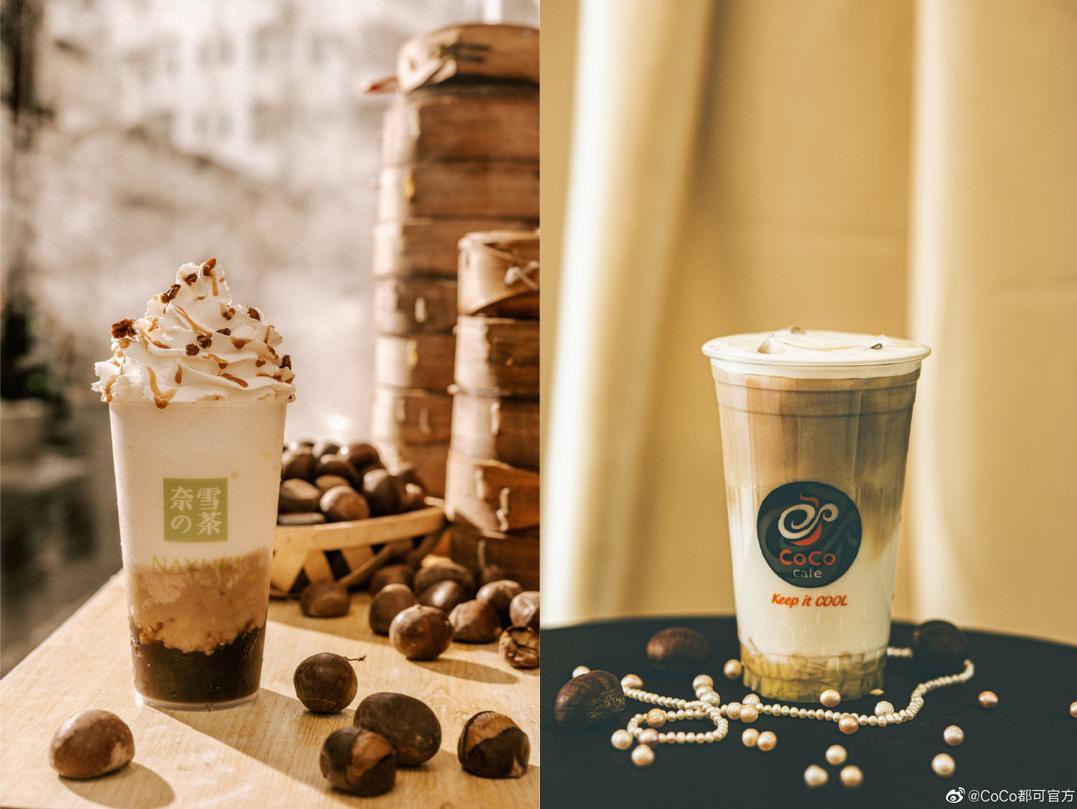 秋冬另一大热门口味板栗,也在渐凉的天气下展现出优势。百分茶研发总监杨世忠曾向媒体透露过一个思路:将板栗与今年爆火的生椰乳相配,在板栗中融合椰子的香气,也许会成为秋冬的流行款。前不久奈雪的茶新推出的生椰焦糖板栗宝藏茶,就将板栗与生椰融合,在营销上也主打初秋的烟火气。