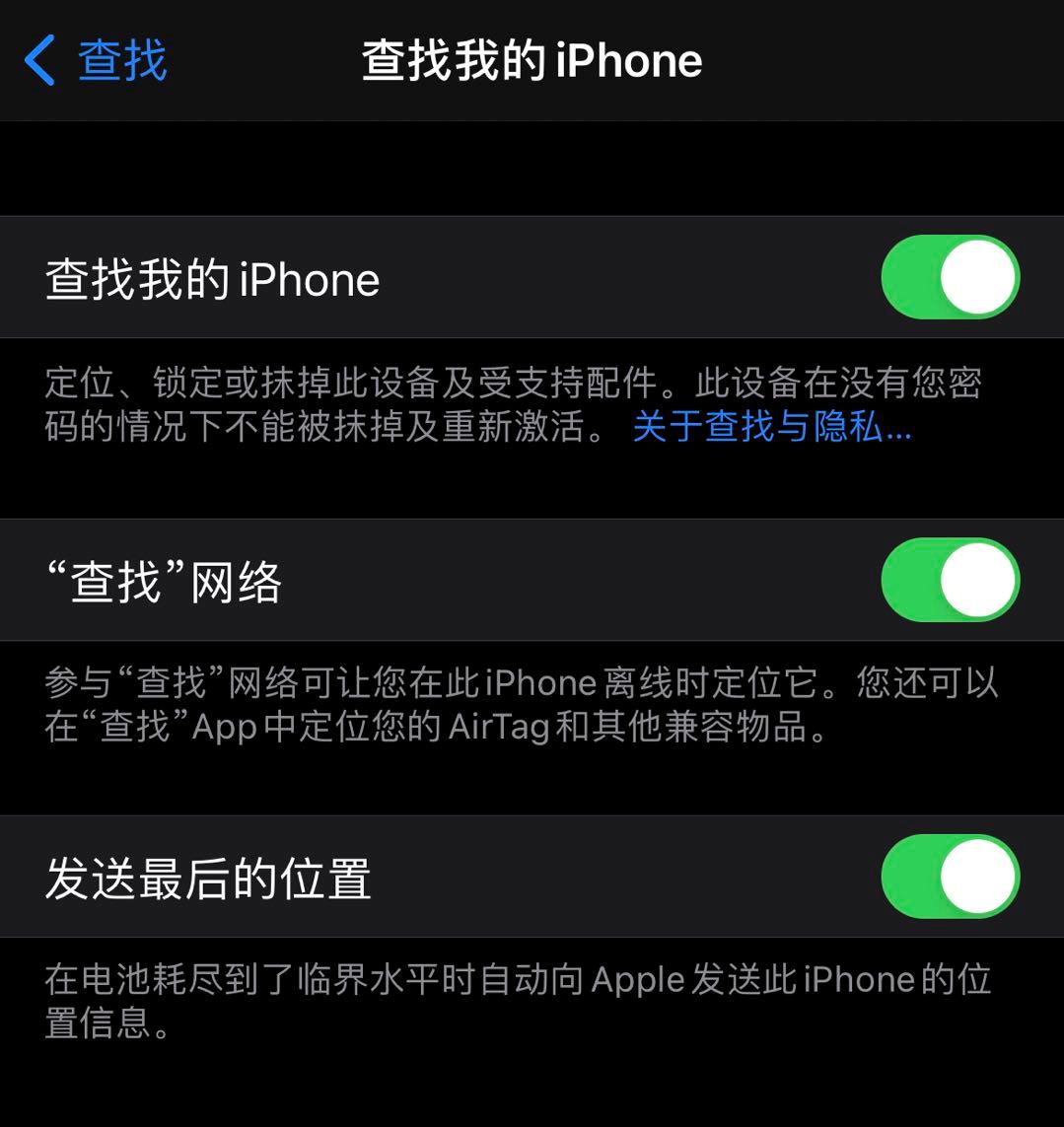 具体而言,用户需要在自己的Apple ID下开启“查找我的iPhone”,并允许“查找”网络,才能在iPhone离线时实现定位,同时iPhone还支持发送最后位置,即在电池耗尽到了临界水平时自动向Apple发送手机的位置信息。