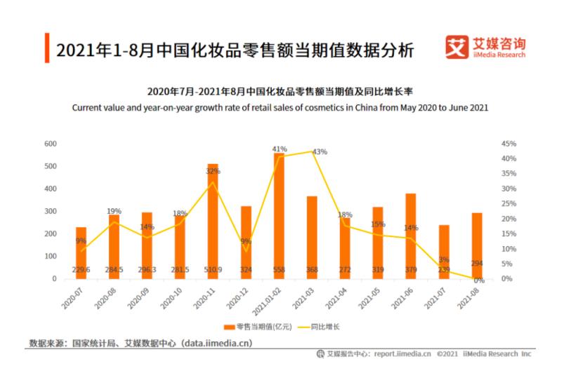 艾媒咨询获取的宏观数据显示,从今年三月开始,随着增长速度的不断下滑,八月化妆品消费总额整体进入停滞增长状态。