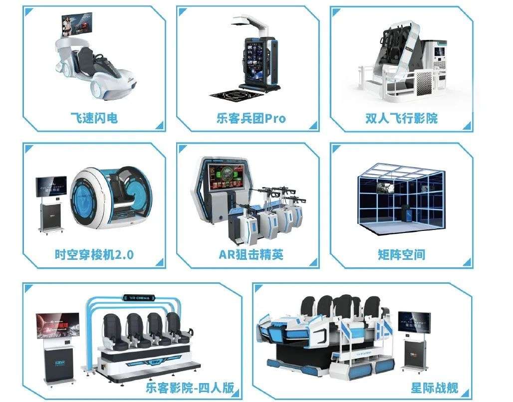 具体的加盟模式,以乐客VR为例,50㎡以上店铺加盟费是98000元,50㎡以下的加盟费是68000元。除加盟费外,需向品牌购买VR设备。设备价格不等,下图所示是主流的几款设备:时空穿梭机是59800元,360度旋转椅是59800元,兵团Pro是29800元,飞速闪电是29800元,AR狙击精英是56800元。内容无需另外购买。确定合作意向后,加盟商需要支付30000元意向金,前期接洽阶段不合适可退款。乐客提供设备回购和换新,3个月内8折回购,1年内6折换新,2年内3折换新。后续消费者每次体验要给到品牌6元的分利,“其中4元是给上游游戏公司。”