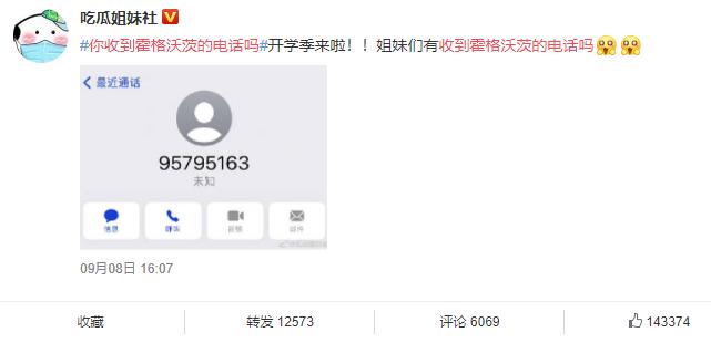 因此可以看到,“你要永远相信魔法”、“你收到霍格沃茨的电话吗”、“我在霍格沃茨看烟花”、“四年后又成为了室友”等一系列充满讨论点的话题登上热搜,激发讨论与传播。话题#你收到霍格沃茨的电话吗#中热度较高的一条微博,是由KOL“吃瓜姐妹社”发布的,该条微博也获得超过1W2的转发以及6000+评论。