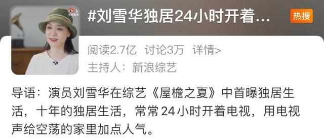 除了老年人恋爱让人上头之外,老年人的独居生活也开始备受关注。这些天,62岁的刘雪华频频登上热搜,她参加了一档记录独居老人生活状态的综艺节目《屋檐之夏》,在节目中展示了老人真实的独居生活。
