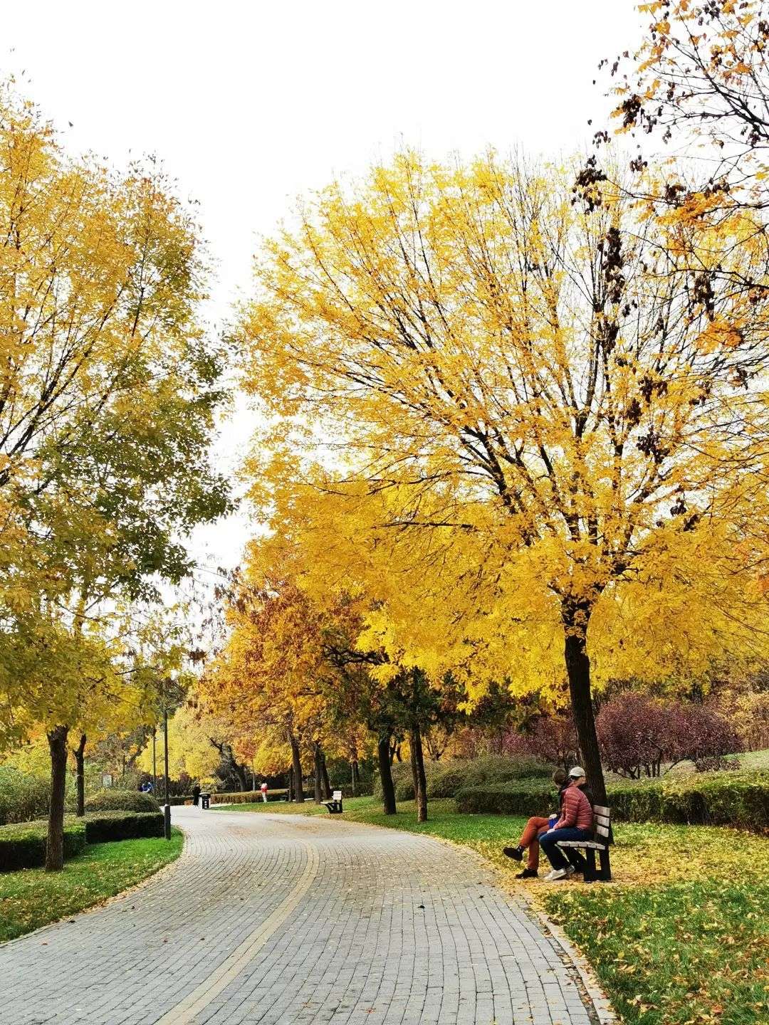 但现在回想那趟旅程,最印象深刻的,还是心血来潮去朝阳公园散步,遇见黄黄的银杏挂在树上。