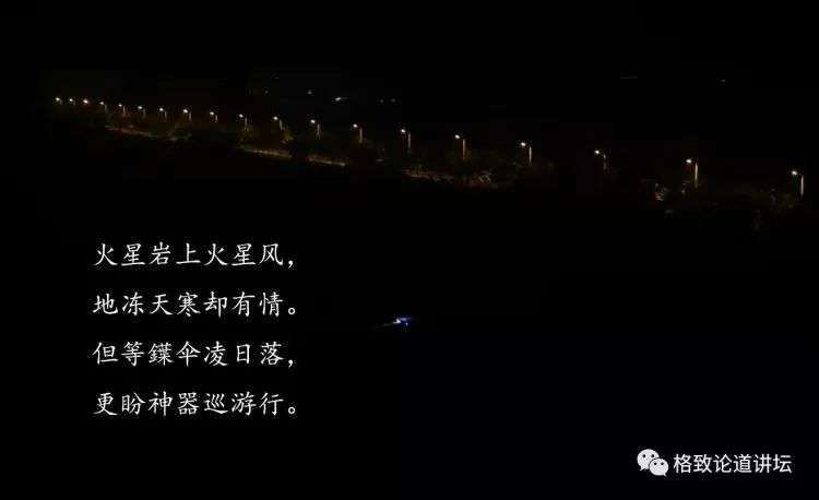 他还很喜欢写诗。在“祝融号”的全部准备工作结束、等待发射的一个晚上,他睡不着看着窗外每天和同事散步的地方,路旁闪着农民养鹅和鸭子留下的一盏蓝灯,觉得那“代表着我们心中的一种盈盈的希望”,于是写了下面这首诗。