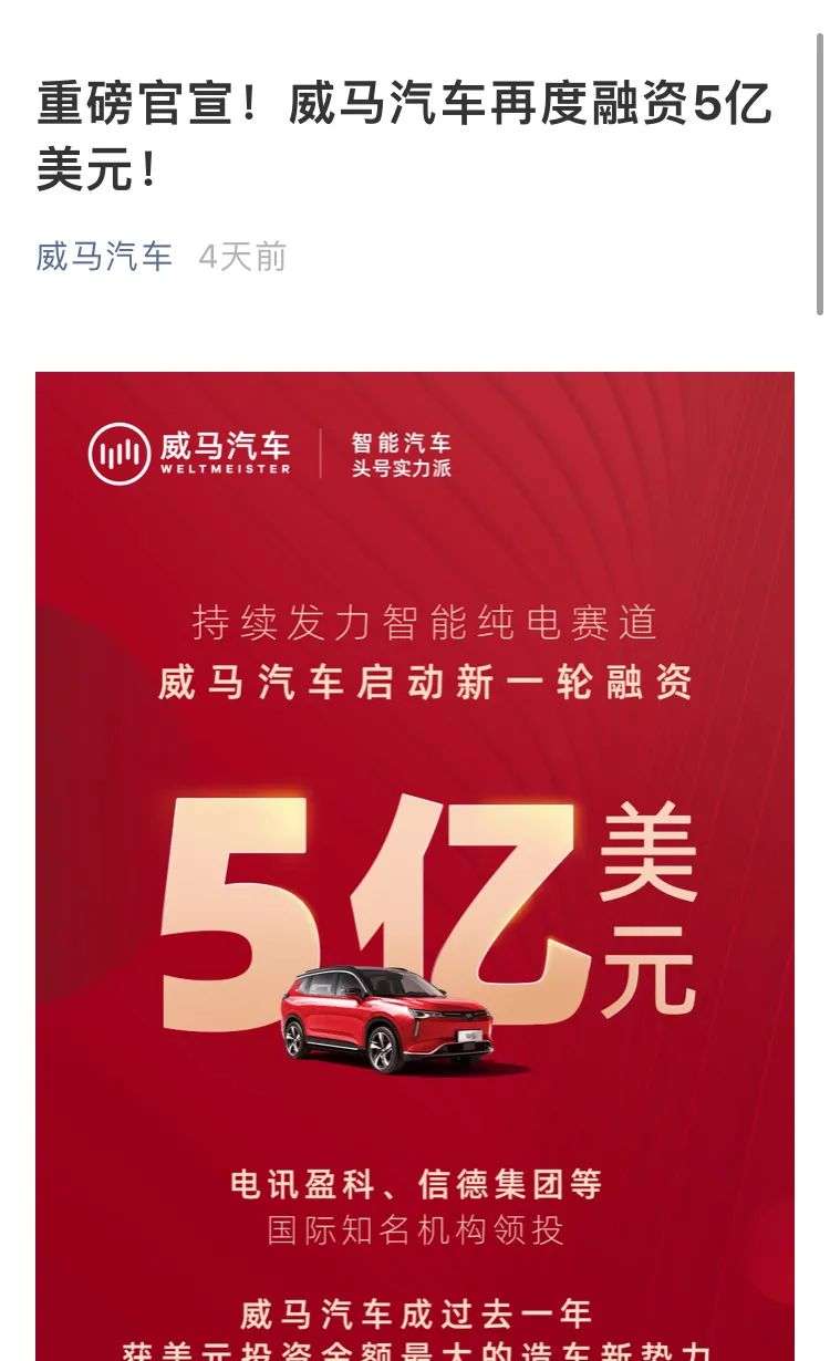 一笔5亿美元的融资,令被称“掉队”的威马汽车再度受到巨大关注。