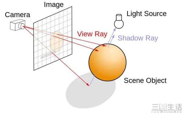 而光线追踪技术作为一个拥有数十年历史的“古老”图形渲染技术,其与传统的光栅化渲染也有所区别。光线追踪是用来确定不同元素可见性的全局性渲染方法,利用光的可逆性质来反向计算,将一个场景的渲染任务拆分成从观察者也就是玩家视角出发的若干条光线对场景的影响,虽然这些光线彼此不知道对方,但却知道整个场景的信息,而每条光线会与场景并行的求交,并根据交点位置获取表面的材质、纹理等信息,再结合光源信息来计算光照效果。