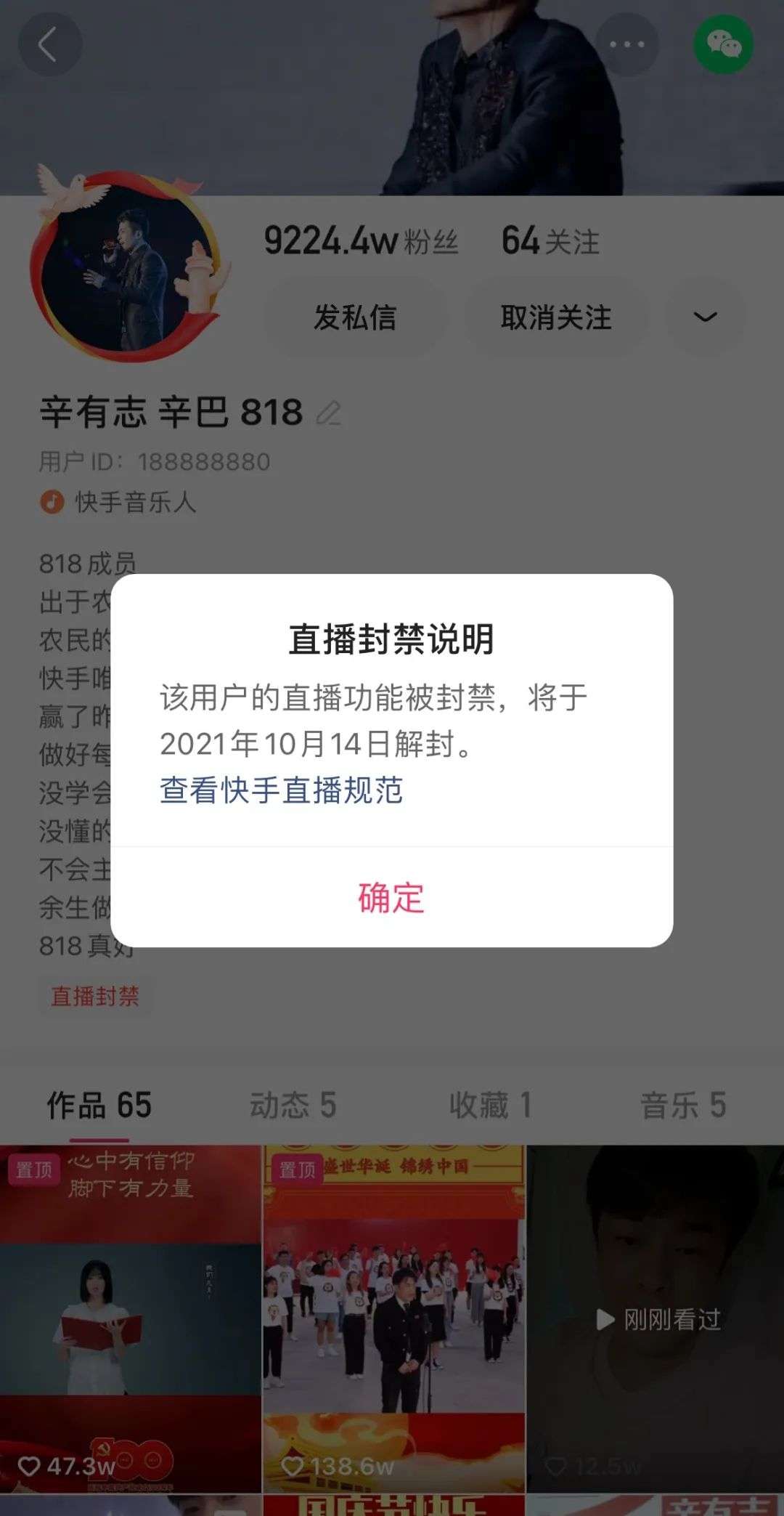蛋蛋直播带货前两天,辛巴就已被快手官方封禁。直播封禁说明显示,将于10月14日解封。起因是,10月7日,辛巴在直播带货皮草专场抱怨平台,“天天你把流量拿去给那些演戏卖货的,给那些卖传家宝的(四川可乐),就是不给我,我得花上千万去买流量,我干啥给你卖命啊,我走了拜拜了,听明白了吗……”