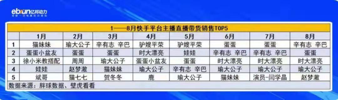 不过,援引亿邦动力的数据可以看出,除了辛选旗下的利益关系绑定最深的蛋蛋、时大漂亮、猫妹妹、赵梦澈这些“老人”之外,并未看到新人有突出的表现。