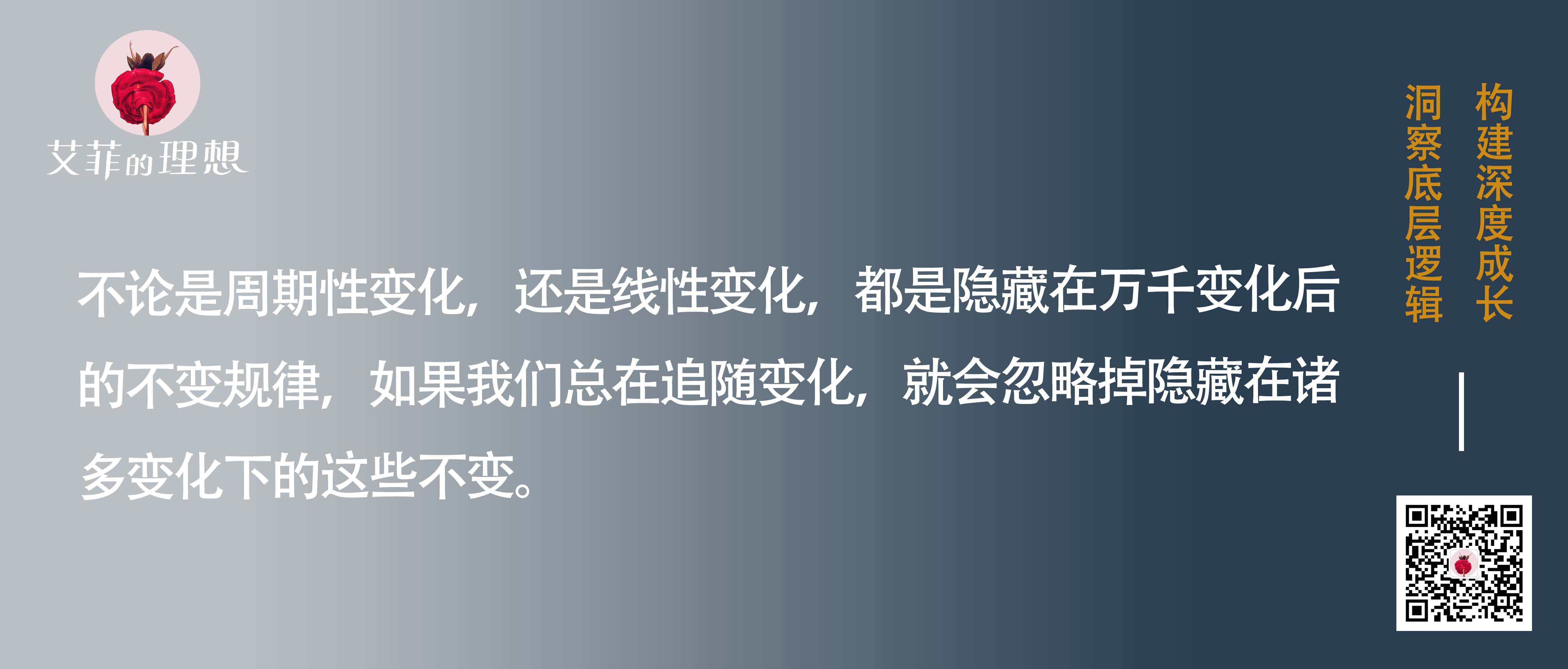 不论是周期性变化,还是线性变化,都是隐藏在万千变化后的不变规律,如果我们总在追随变化,就会忽略掉隐藏在诸多变化下的这些不变。