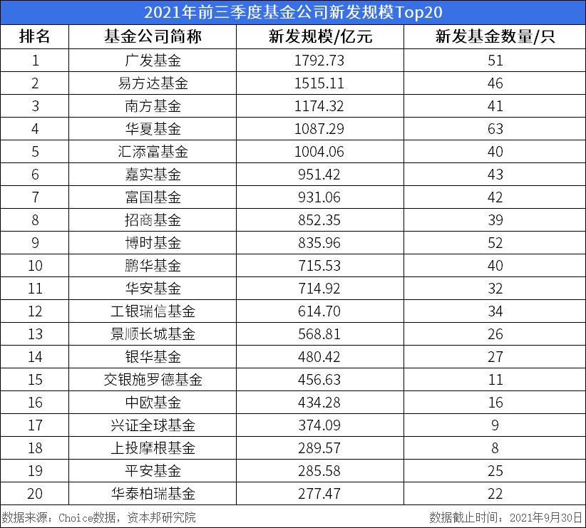 2021年前三季度公募新发规模2.34万亿元,哪家基金公司最受青睐?