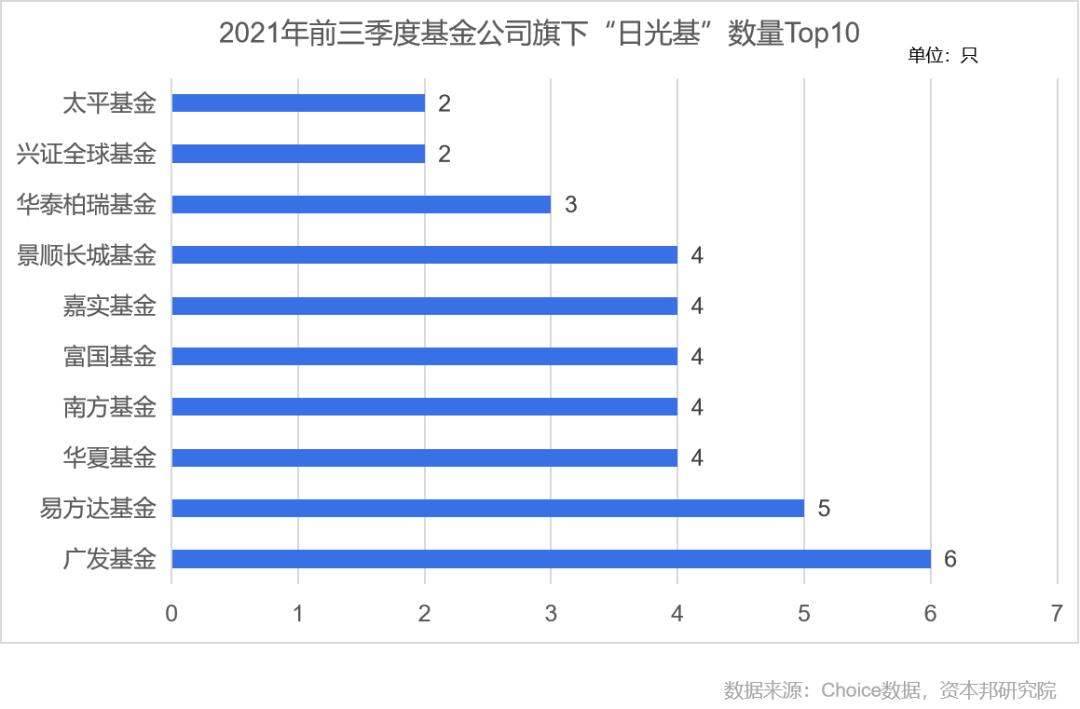 广发基金年内前三季度旗下持有最多“日光基”,合计6只;其次是易方达基金公司,合计5只“日光基”。随后是南方基金、富国基金、嘉实基金、景顺长城基金等均合计4只“日光基”。从基金投资类型来看,这些爆款新品大部分是主动权益基金。