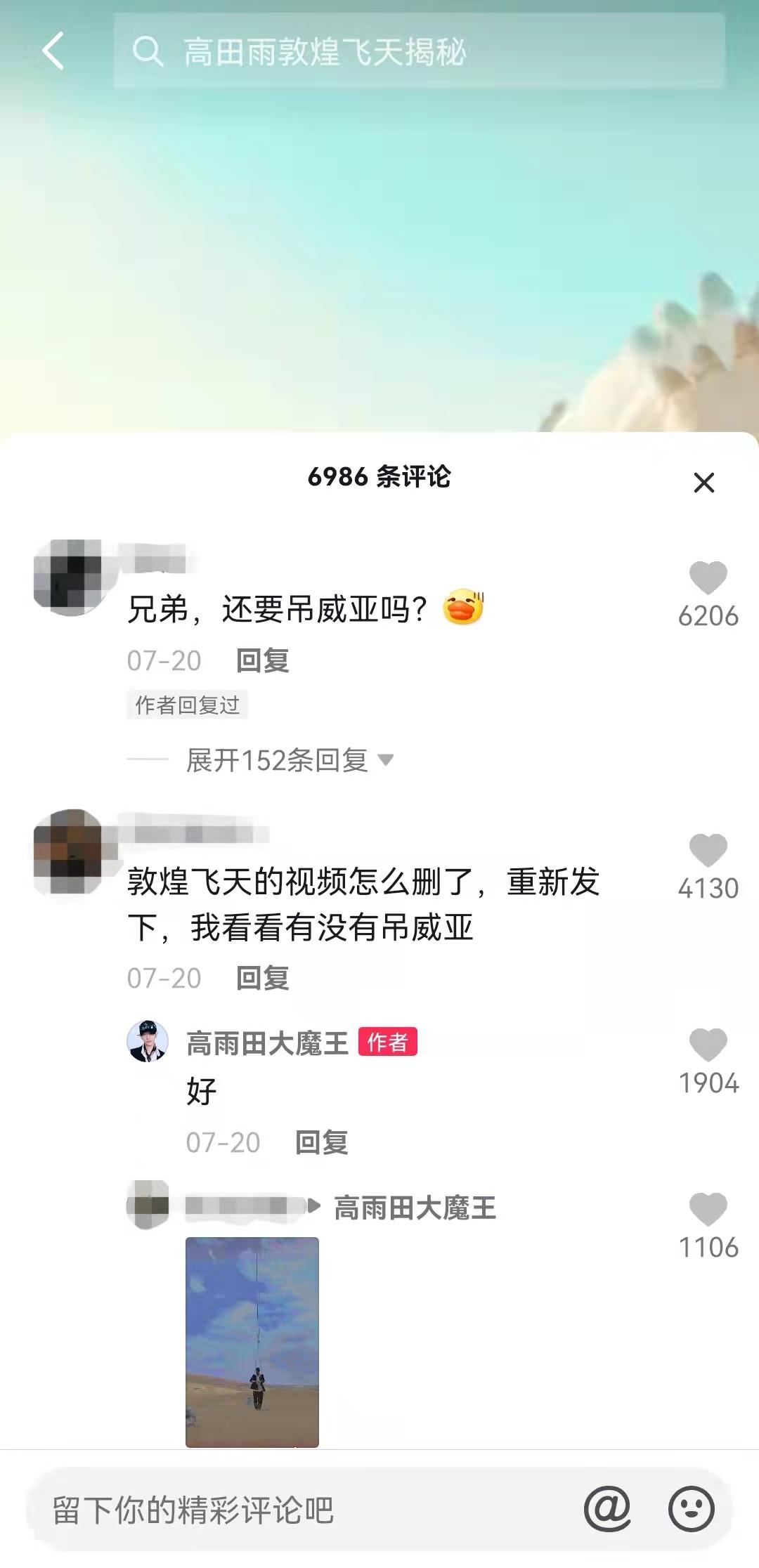 观众可以反复观看魔术短视频来寻找破绽,“高雨田大魔王”就被质疑飞天是使用了威亚。