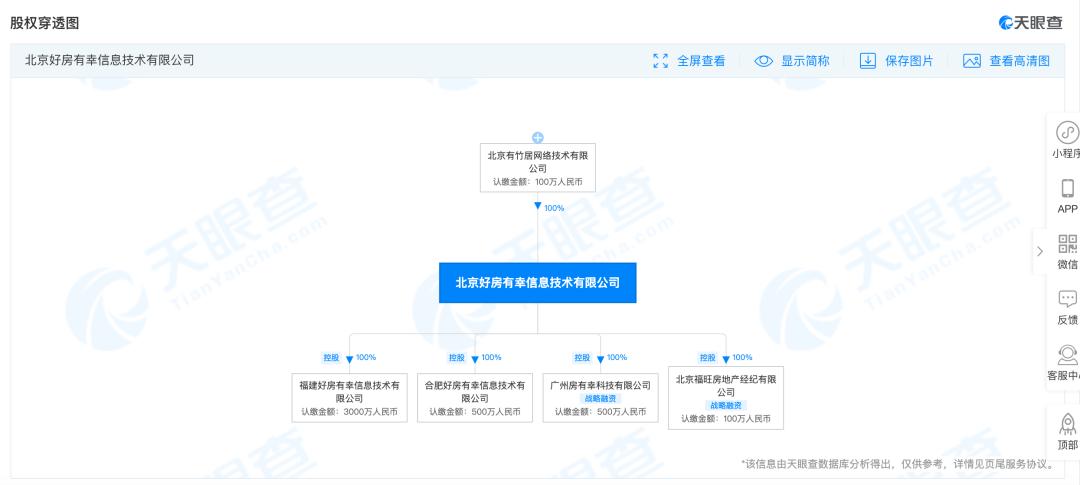 目前福建好房、北京福旺的母公司都是北京好房有幸信息技术有限公司,此外,北京好房还全资控股了广州、合肥两家公司,四家公司的经营范围都有房地产经纪资质,其中最近成立的福建好房的注册资本额最高。