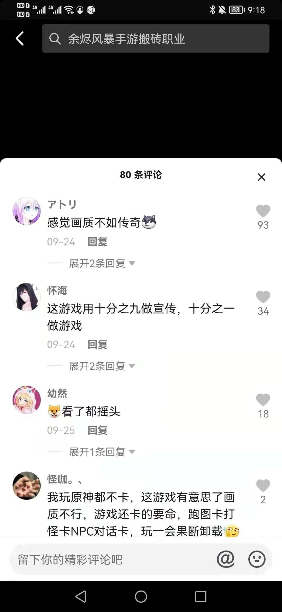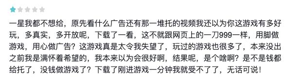 在TapTap上《余烬风暴》评分4.4,众多玩家表示“打一星都嫌多”。同时,该游戏的玩家评分也集中分布在1星与5星,没有足够的中间过度星,这种情况与刷分内容的表现相似——总的而言 ,目前就游戏品质、市场反馈来看,或应了抖音用户“怀海”的一句话“这游戏用十分之九做宣传,十分之一做游戏。”