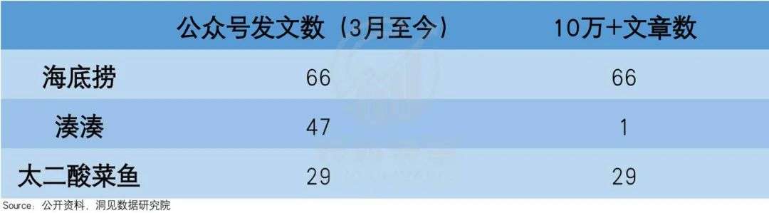 备注:海底捞同样篇篇10万+,但有品牌成立时间长,粉丝积淀多的原因。