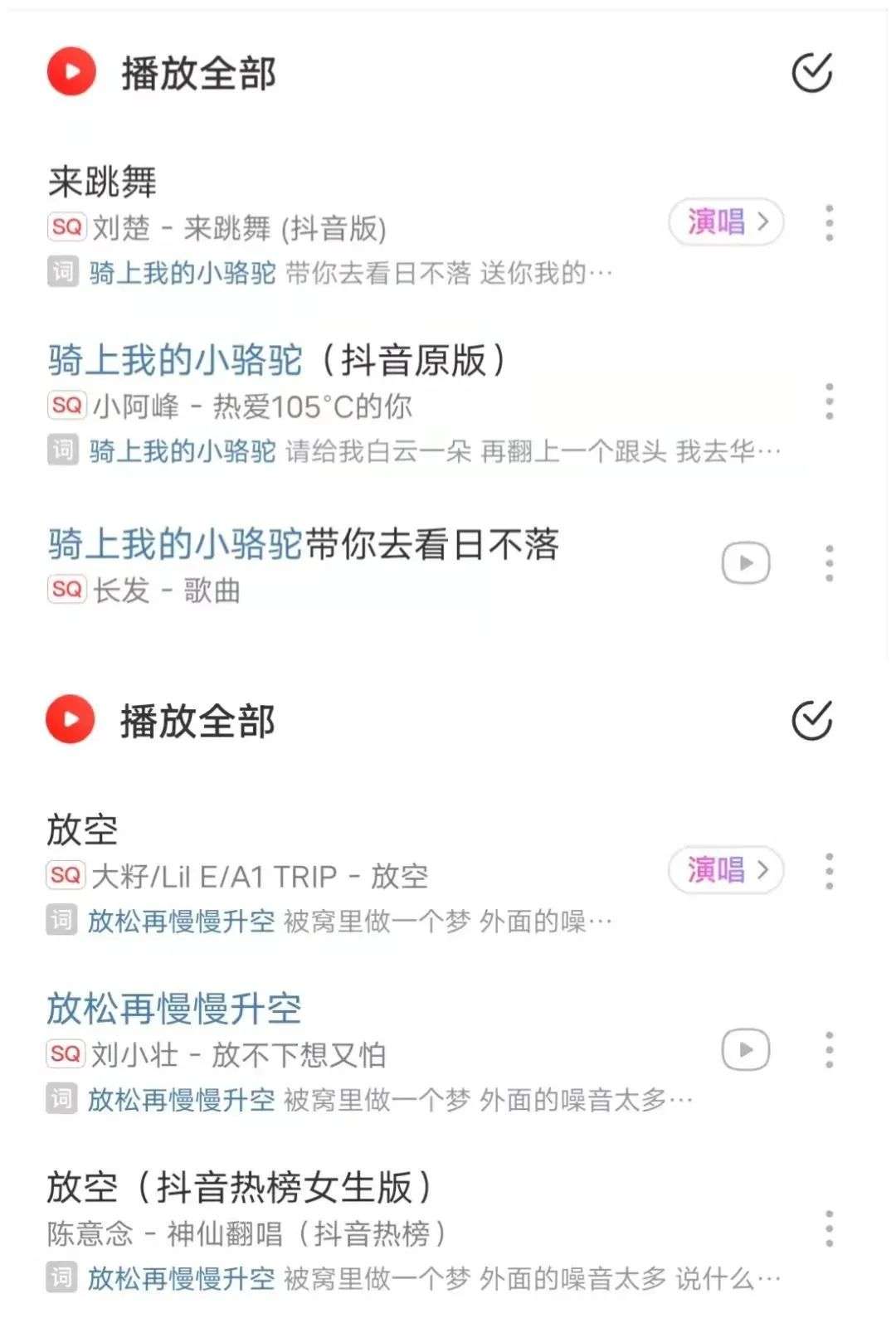 用15秒引发共鸣也是许多制作人的尝试,用一套生产模板进行批量化产出。此前,自媒体“刺猬公社”曾采访过一家音乐公司的负责人,他表示,抓取网易云热评来寻找用户同理心,是他们创造歌词的主要方式。而在歌曲唱腔上,情绪被夸张的放大,烟嗓、撒娇等唱法在抖音上大行其道。