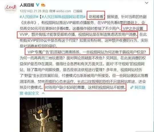 开了会员还要看广告,这当然是一大部分观众所不能接受的,但广告背后,平台方和观众最大矛盾点可能是:花钱升级了服务之后,却没有得到相应的享受。