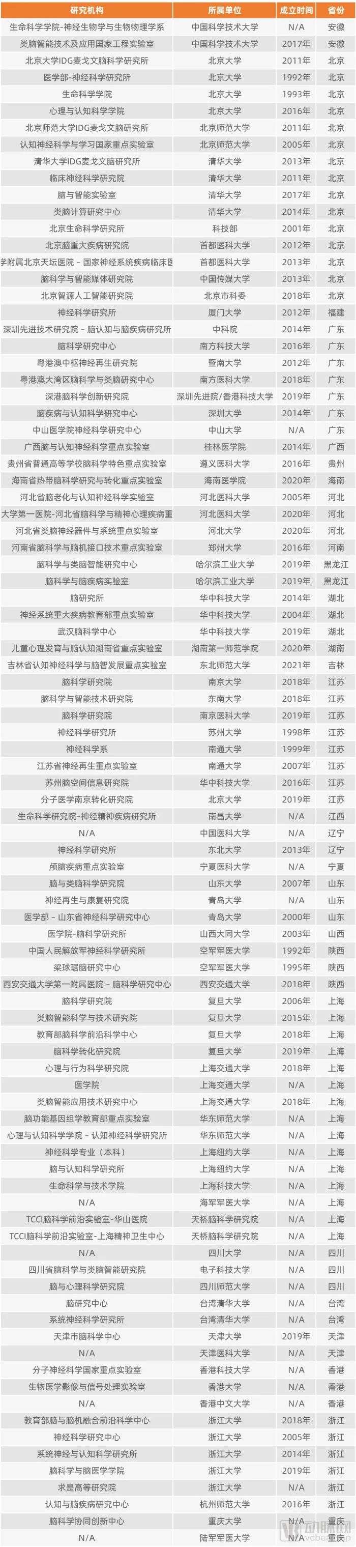 我国主要脑科学研究机构不完全名单(不包含中科院机构及北京/上海脑科学与类脑研究中心)