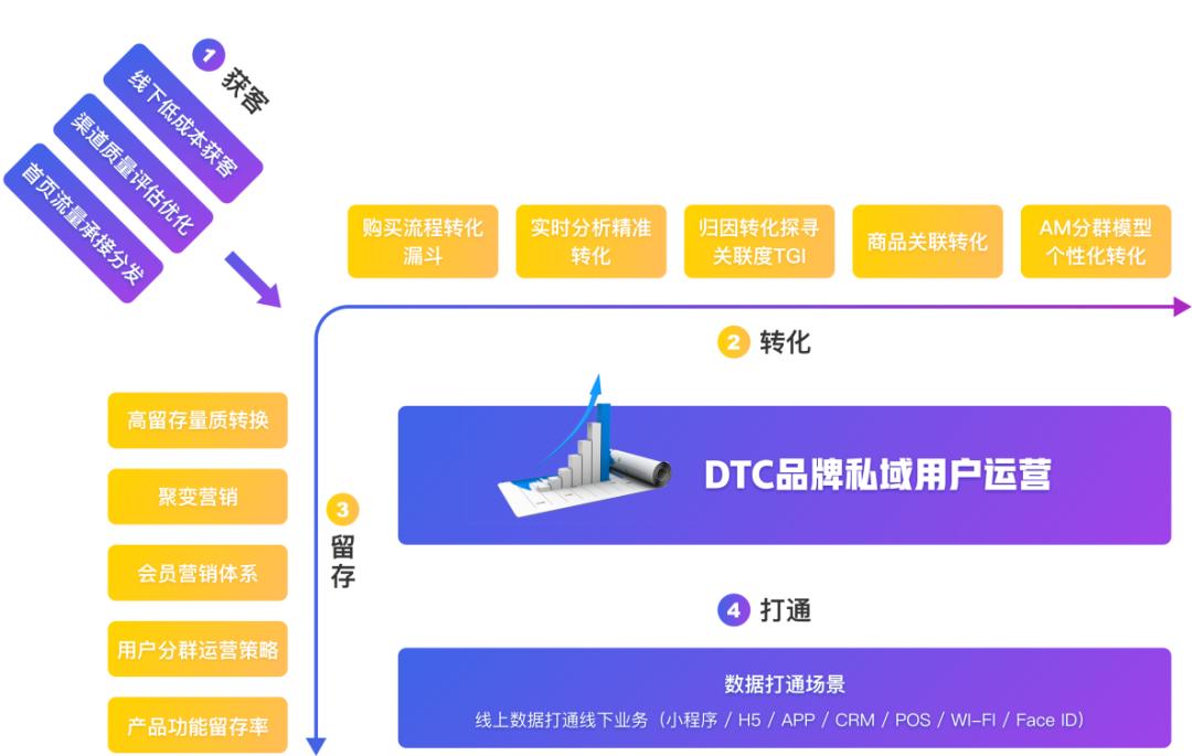 DTC品牌的私域用户运营离不开两个基础能力的建设,一个是数据体系,一个是触达体系。数据体系最终是为了更好地进行用户细分,触达体系最终是为了更好地进行用户转化,两者缺一不可。