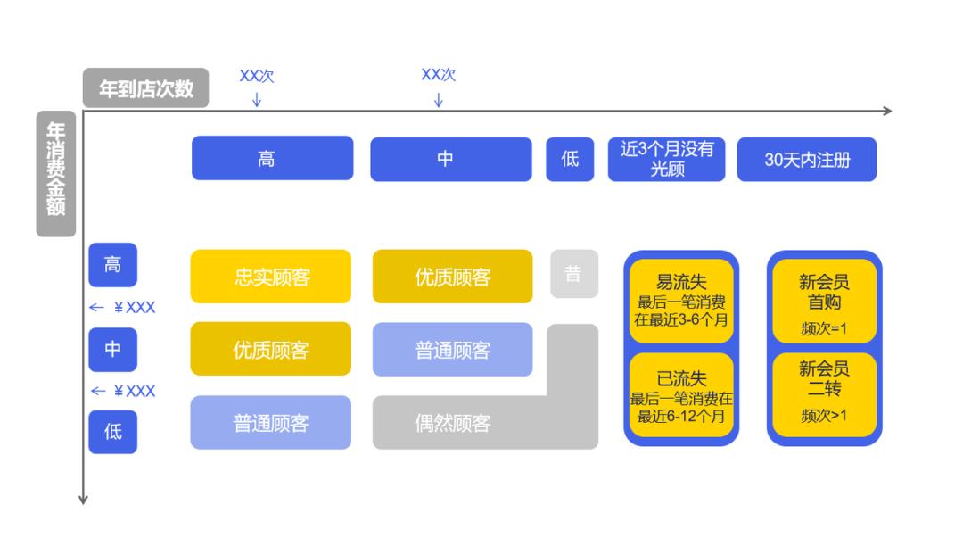 Step 2:核心用户筛选,一般的企业会看RFM模型,而根据P值的概念,该零食品牌根据RFP模型对用户进行价值划分,将用户分为3维8类,遵循二八原则,一个企业80%的营业额是由最重要的20%的用户贡献的,所以该零食品牌也应将80%的资源和精力投入到20%对自己最重要的忠诚高价值用户身上: