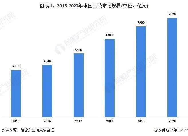 2020年中国美妆市场规模达到8620亿元,2015-2020年的复合增长率达到16.0%,成为又一条令人瞩目的赛道。