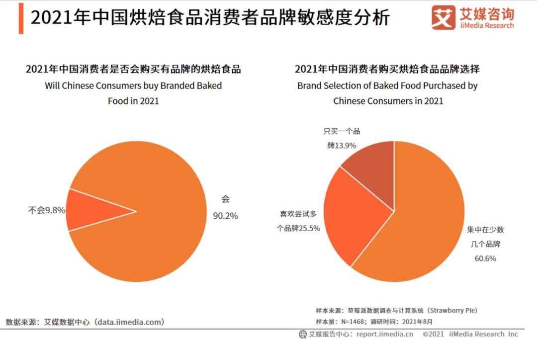 但消费者并不会只集中在一家品牌上。调研数据显示,90.2%的消费者更倾向购买有品牌的烘焙食品,仅有13.9%的消费者对品牌忠诚度较高,只购买一个品牌。
