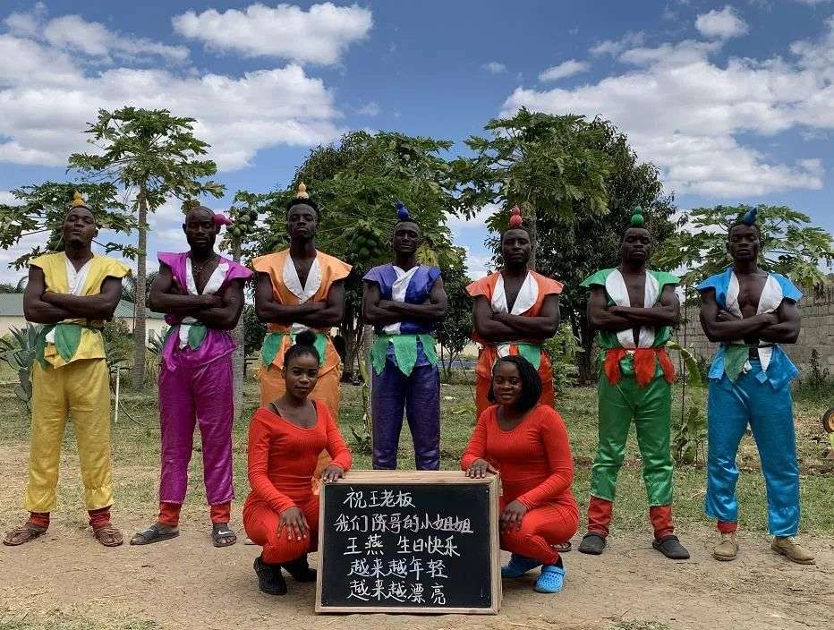 其中一些非洲兄弟都可以自己在黑板上手写祝福汉字了,所以再多订单都不怕。