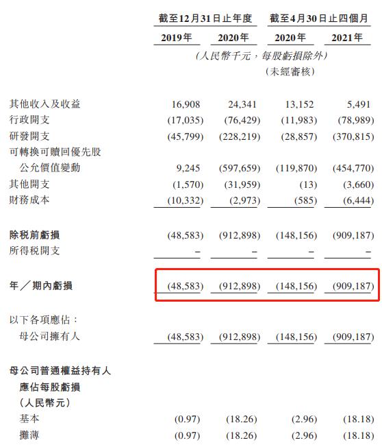 其中可转换可赎回优先股公允价值变动与融资有关,并不反映日常实际运营情况。