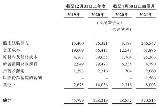 另一方面数据显示相较于行政开支,三叶草生物用于研发上的开支是最多的。