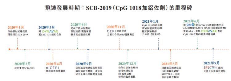 2021年9月,三叶草生物宣布SCB-2019在SPECTRA(评估三叶草的三聚体重组蛋白结合已添加佐剂的COVID-19疫苗的保护性疗效及安全性研究,即一项全球范围的关键性II/III期临床试验)中,此款产品达到主要及次要疗效终点。