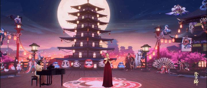 “比如在《前尘卷》里主、副歌切换的时候,场景从舞台实拍转场到SP花鸟卷CG,结合蒙太奇手法利用SP花鸟卷画笔一挥的动作,使得整个转场有力节奏分明。也完美贴合了SP花鸟卷能够穿越虚假和现实世界的角色设定,这对于阴阳师玩家来说,会有一种特别的惊艳。”
