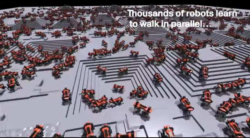 4000个模拟机器人接受了强化学习的训练,这是一种AI方法,灵感来自于对动物如何通过正反馈和负反馈学习的研究。当机器人移动它们的腿时,一个算法会判断这对它们行走能力的影响,并相应地调整控制算法。