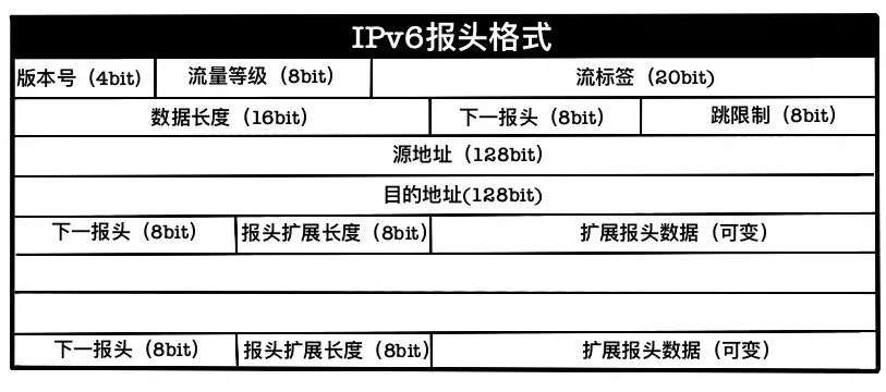 IPv6的第二个重大改进,在于“快递包装”的升级。 IPv6的数据报文结构变得更加丰富,里面可以记录更多的内容和信息。
