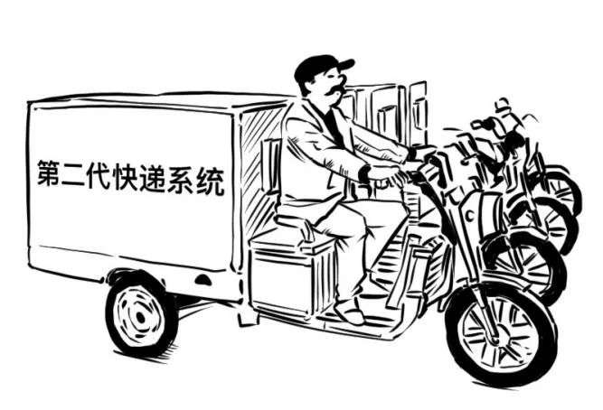 到了最近这几年,因为前面我们提到的网络挑战,远远超过了第二代快递系统的能力范围。