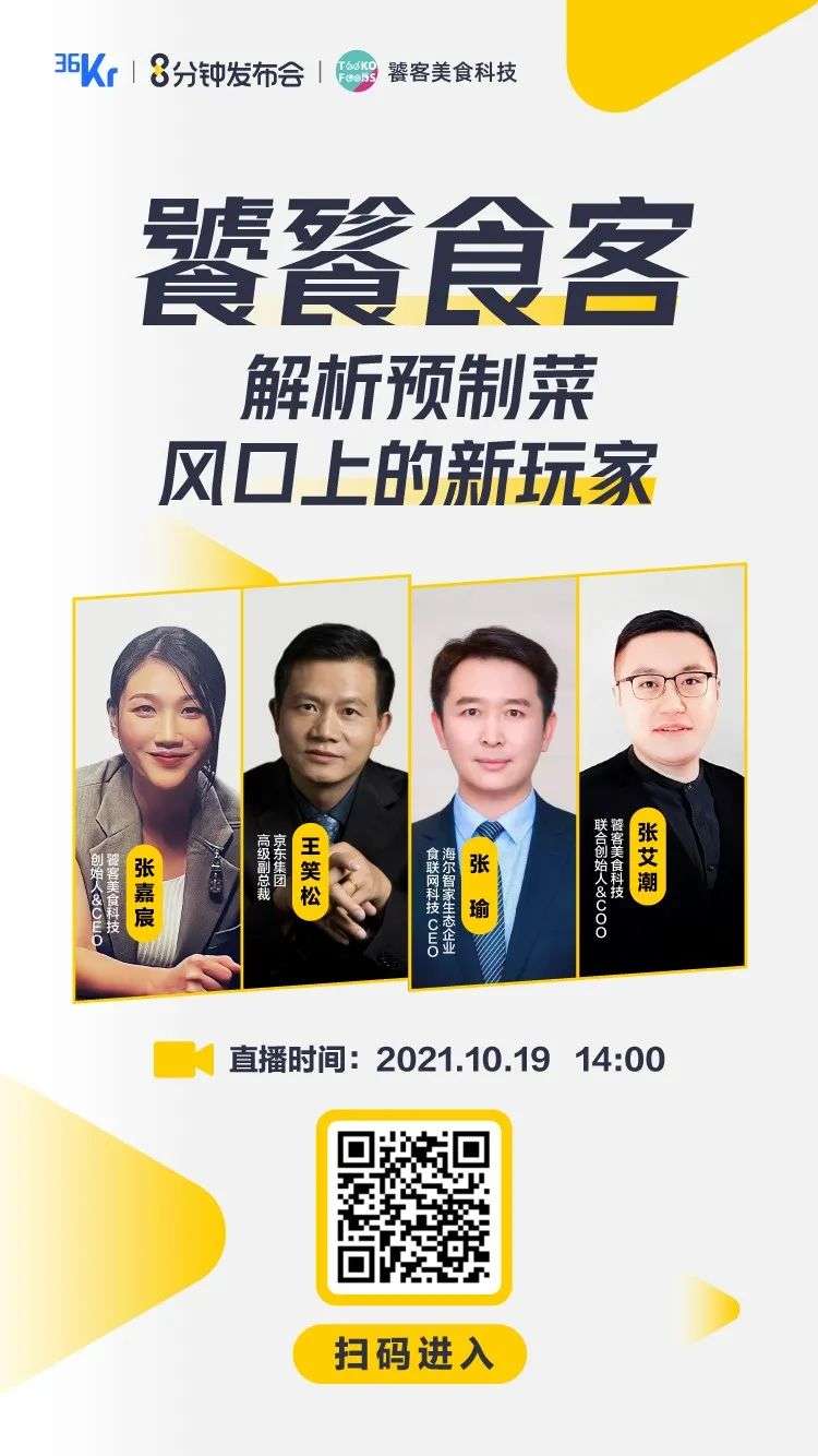 好消息是,面向C端消费者的预制菜的出现,终于让人们有了兼顾口味、烹饪乐趣、餐饮社交的可能性,而饕客科技正是当下C端预制菜领域中的一名新星。10月19日,36氪联合饕客科技举办「8分钟发布会」,将会邀请行业投资人及相关商业伙伴,共同在线分享关于预制菜的行业判断、未来趋势。