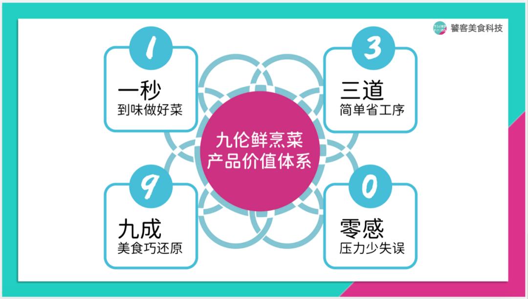 其中, “九伦鲜烹菜”就是饕客科技布局预制菜赛道的核心品牌。,试图通过即烹品类预制菜的方式,让消费者用省时省力的工序,烹饪出零失误的拿手菜。并从用户场景出发,九伦鲜烹菜已经逐步构建出“一秒到味做好菜;三道简单省工序;九成美食巧还原;零感压力少失误”的“一三九零”品牌价值体系,为用户解决做饭难、聚会累的困扰。
