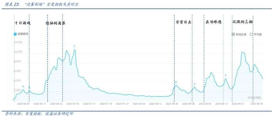 如下图,在剧播期间(2020.06-2020.09),爱奇艺的股价随着剧目的推出波动,而在《隐秘的角落》和《沉默的真相》大爆期间,股价出现大幅拉升。