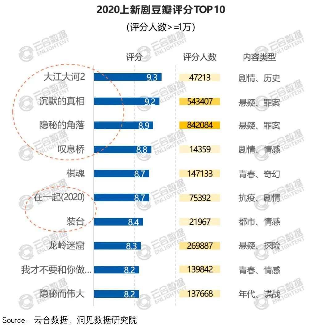 例如,据云和数据,2020年共有27部新剧,在豆瓣评分破8,同比上一年增加15部。