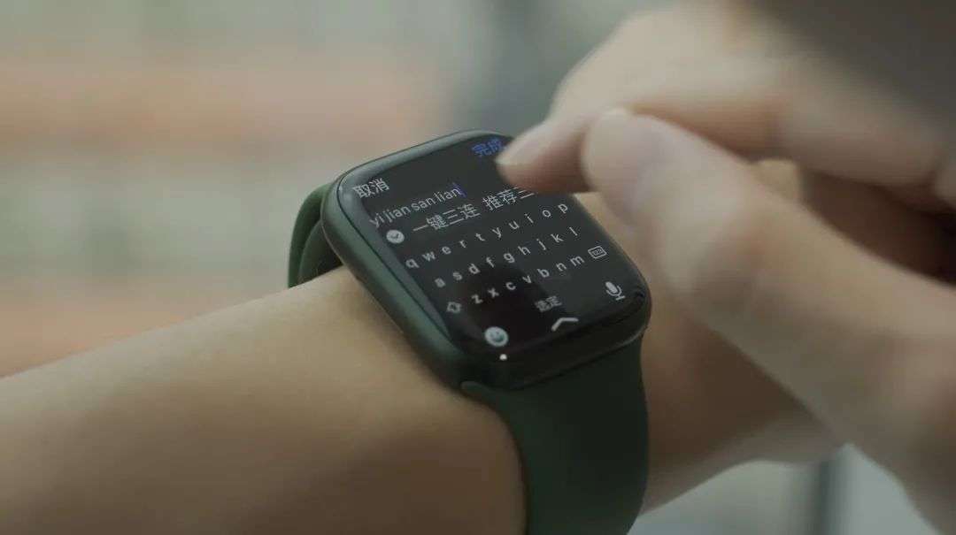 不仅如此,得益于屏幕的增大,苹果可以放心地在 Apple Watch Series 7 上塞进一个触摸全键盘了,可以更好地应对一些输入需求。如果你习惯 iPhone 上的滑动键盘,那么新款 Apple Watch 全键盘的速滑输入会给你更多的惬意。