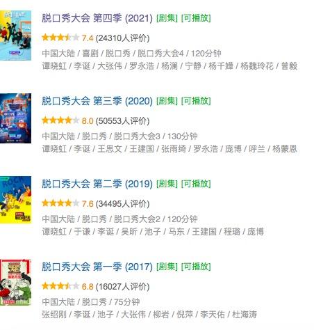 《脱口秀大会4》仍然是当下热度最高的综艺。截至目前,节目播放量逼近26亿,期均1.36亿,上一季则是1.1亿。只是隐藏在热搜话题和播放量数据下,豆瓣评分7.4的成绩,低于第二季的7.6分和第三季的8.0分,也在切实显露着观众最真实的声音。