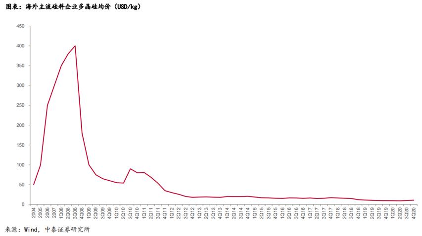 翻开多晶硅的历史我们发现,2008年也曾经上演过“拥硅为王”、硅料限制行业发展的故事,硅料历史最高价格曾达400美元/kg。彼时,我国的光伏产业主要集中在中游,多晶硅行业发展较晚,技术上被国外封锁,但是随着资本的介入,逐步打破了技术枷锁,国内企业开始大规模扩产。