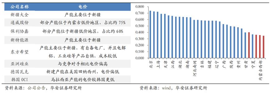 从图中可以看出,电力的优势是壁垒之一,而下图则可以明显看出,硅料龙头企业普遍分布在电价较低的区域,并且通过自备电厂使得成本大幅下降,在限火限电的背景下,其它企业难以复制。