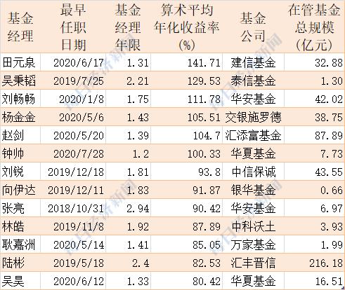 不过在这其中,不少基金经理由于管理年限较短,短期业绩又冲得比较高,使得折算后的年化收益率看上去非常惊人。