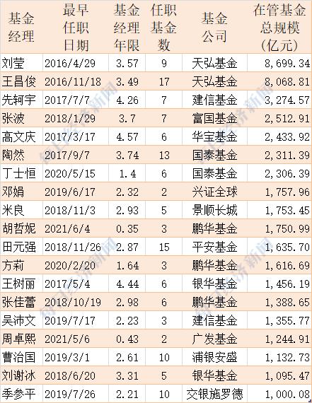 目前,管理规模较大的基金经理,比如广发的郑澄然421.74亿元、睿远的朱璘369.63亿元、银华的张萍365.67亿元、易方达的王元春358.85亿元、诺安基金的蔡嵩松353.28亿元、汇丰晋信的陆彬216.18亿元。