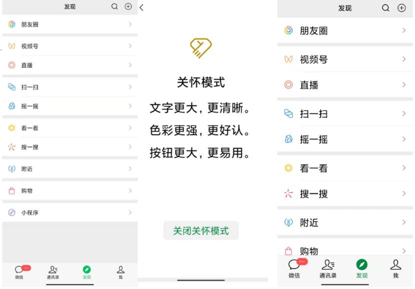 “虽然按钮和字体放大了,但有一些视频和图片上的固定文字还是很小,与放大后的字体、界面搭配很突兀”,张大为表示。在此之外,他还提及一些App似乎在刻意提示自己是一个老人,“用个软件都得提示用的是老年版,这让我难免有些不舒服”。