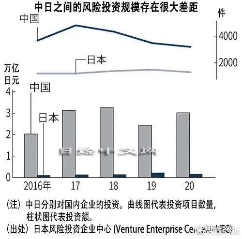 据日本一般财团法人风险投资企业中心 (Venture Enterprise Center、VEC)介绍,中国的风险投资对当地企业的投资在2~3万亿日元左右,规模是日本的10~20倍。Z Venture Capital的投资经理黄未来预测,新业务陆续出现,加以借鉴的日本初创企业会越来越多。